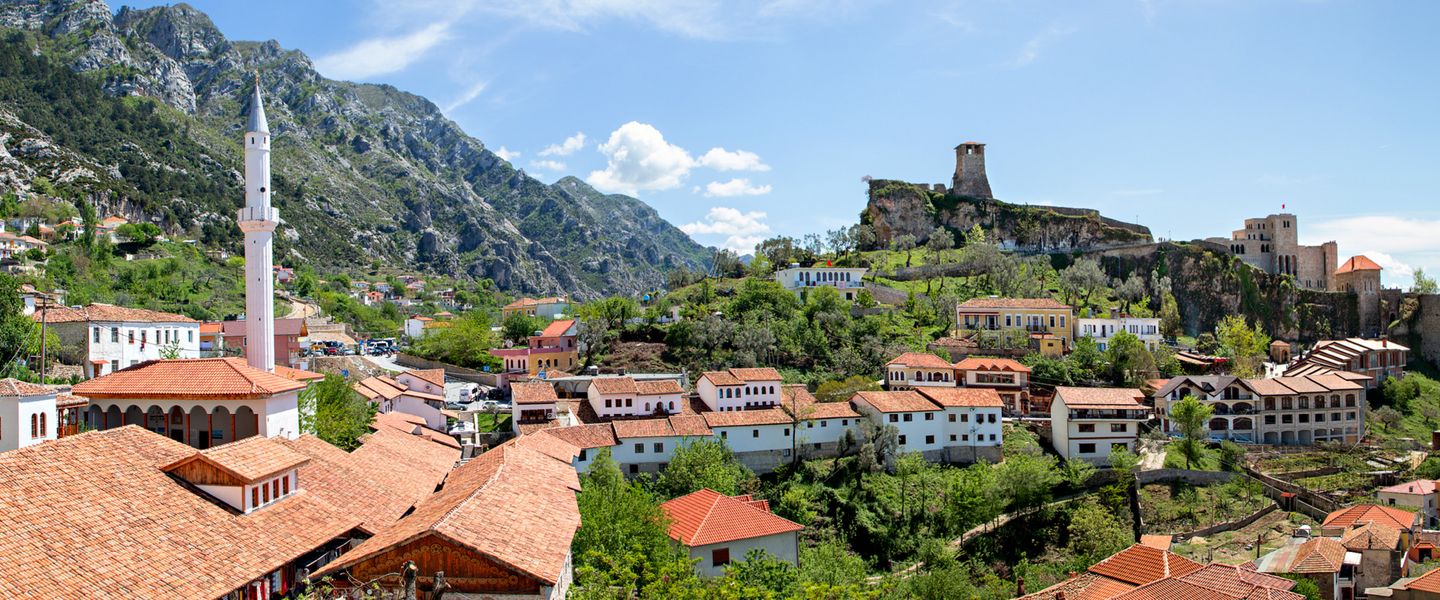 Kruja ist eine historische Stadt in Albanien, die sich in der Region Durrës befindet, etwa 20 Kilometer nordöstlich von Tirana, der Hauptstadt des Landes. Die Stadt ist berühmt für ihre Rolle im Widerstand gegen die osmanische Herrschaft im 15. Jahrhundert, insbesondere durch die Figur von Skanderbeg, einem nationalen Helden Albaniens. Kruja war das Zentrum des Widerstands und beherbergt die Festung von Kruja, die eine wichtige Rolle in den Kämpfen gegen die Osmanen spielte. Die Stadt ist auch bekannt für ihre malerische Altstadt, die von traditionellen albanischen Häusern und einem lebhaften Basar geprägt ist.