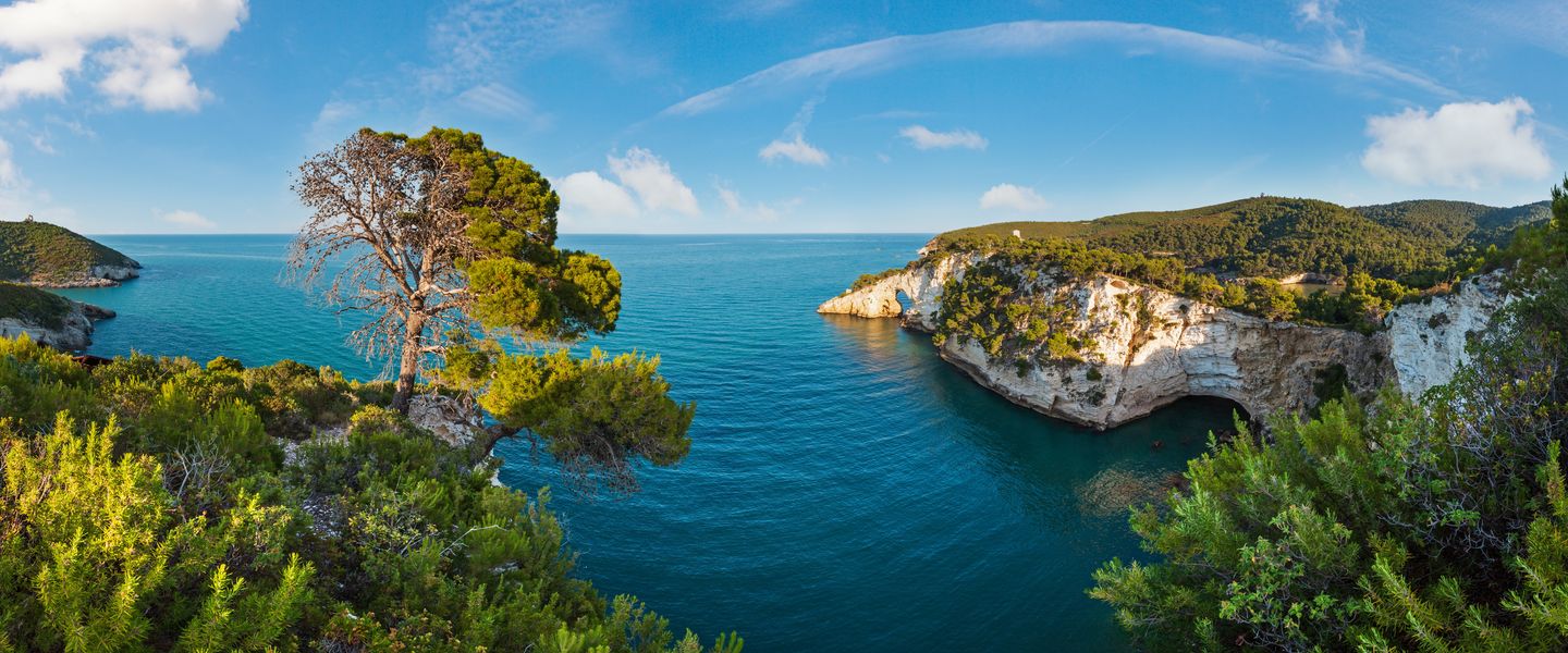 Der Gargano ist eine atemberaubende Halbinsel, die etwa 65 Kilometer ins Adriatische Meer hineinragt und oft als „Sporn“ des italienischen Stiefels bezeichnet wird. Sowohl die Küste als auch das waldreiche Innere gehören zu den landschaftlich reizvollsten Gegenden Italiens. Große Teile der Halbinsel sind Teil des Nationalparks Gargano, der mit seinem dichten Mischwald, der Foresta Umbra, ein beliebtes Erholungsgebiet ist. Entdecken Sie die pittoresken Fischerorte Rodi Garganico, Peschici und Vieste sowie die umliegenden malerischen Badebuchten mit ihren bizarren Felsformationen.