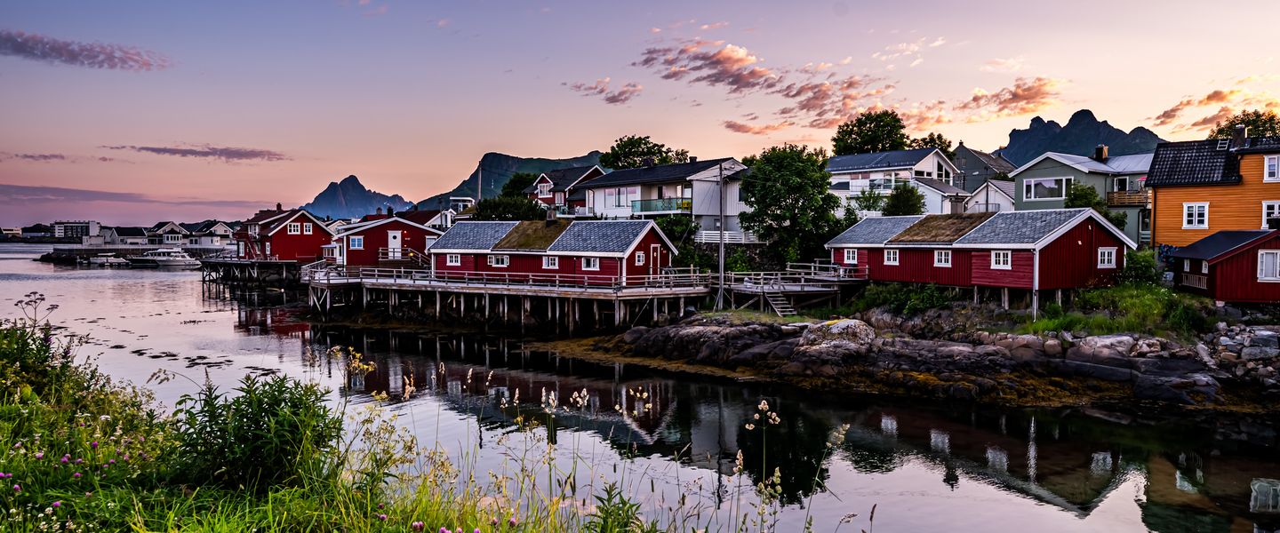 Die Lofoten liegen im Nordwesten Norwegens, etwa 200 Kilometer nördlich des Polarkreises. Geografisch erstrecken sich die Inseln über eine Länge von etwa 150 Kilometern und sind durch eine Reihe von Brücken und Fähren miteinander verbunden. Die Hauptinseln sind Vestvågøy, Flakstadøy, Moskenesøy und Austvågøy, wobei die Stadt Leknes und das malerische Reine beliebte Ausgangspunkte für Erkundungen sind. Die Region ist gut erreichbar über den Flughafen Leknes und die E10, die eine direkte Verbindung zu den wichtigsten Städten und Sehenswürdigkeiten bietet. Die zentrale Lage der Lofoten macht sie zu einem idealen Ziel für Reisende, die die Schönheit der norwegischen Natur und die kulturellen Schätze der Region erkunden möchten. Die Kombination aus dramatischen Landschaften, vielfältigen Freizeitmöglichkeiten und der Nähe zu weiteren Attraktionen, wie dem Nationalpark Lofotodden und den historischen Wikingersiedlungen, macht die Lofoten zu einem bereichernden Erlebnis für alle, die die Faszination dieser einzigartigen Region entdecken möchten.
