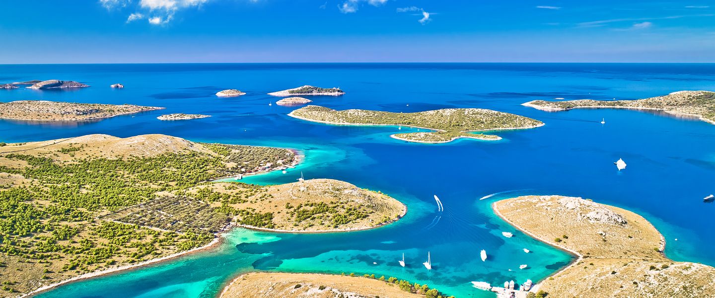 Die Kornaten sind ein atemberaubendes Archipel in Kroatien, das aus über 140 Inseln und Inselchen besteht und für seine unberührte Natur, kristallklaren Gewässer und beeindruckenden Felsformationen bekannt ist. Dieses einzigartige Reiseziel ist ein wahres Paradies für Segler, Taucher und Naturliebhaber, die die Schönheit der Adria in vollen Zügen genießen möchten. Die Kornaten sind Teil des Nationalparks Kornati, der 1980 gegründet wurde, um die außergewöhnliche Flora und Fauna sowie die beeindruckenden Landschaften zu schützen. Die Region ist berühmt für ihre steilen Klippen, versteckten Buchten und die Vielfalt an Meereslebewesen, die Taucher und Schnorchler anziehen. Historisch gesehen war das Gebiet von den alten Römern besiedelt, und die Überreste von antiken Siedlungen sind noch heute sichtbar. Ein Besuch der Kornaten ist eine hervorragende Gelegenheit, die unberührte Natur zu erleben, die Ruhe und Abgeschiedenheit der Inseln zu genießen und die lokale Kultur und Gastronomie zu entdecken.