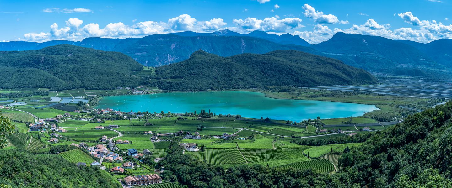 Der Kalterer See liegt in der Nähe der Stadt Kaltern, etwa 20 Kilometer südlich von Bozen in Südtirol, Italien. Geografisch ist der See von sanften Hügeln, Weinbergen und Obstplantagen umgeben, die eine idyllische Kulisse bieten. Die Lage des Kalterer Sees macht ihn leicht erreichbar, sowohl mit dem Auto als auch mit öffentlichen Verkehrsmitteln. Die Umgebung ist reich an Wander- und Radwegen, die es den Besuchern ermöglichen, die Schönheit der Region aktiv zu erkunden. Die Nähe zu weiteren Sehenswürdigkeiten, wie den Mendelpass und die Weinstraße, bietet zusätzliche Möglichkeiten für Ausflüge und Erkundungen. Die Kombination aus der idyllischen Lage, der beeindruckenden Natur und der Nähe zu kulturellen Highlights macht den Kalterer See zu einem bereichernden Erlebnis für alle, die die Schönheit und Vielfalt der Südtiroler Landschaft entdecken möchten.